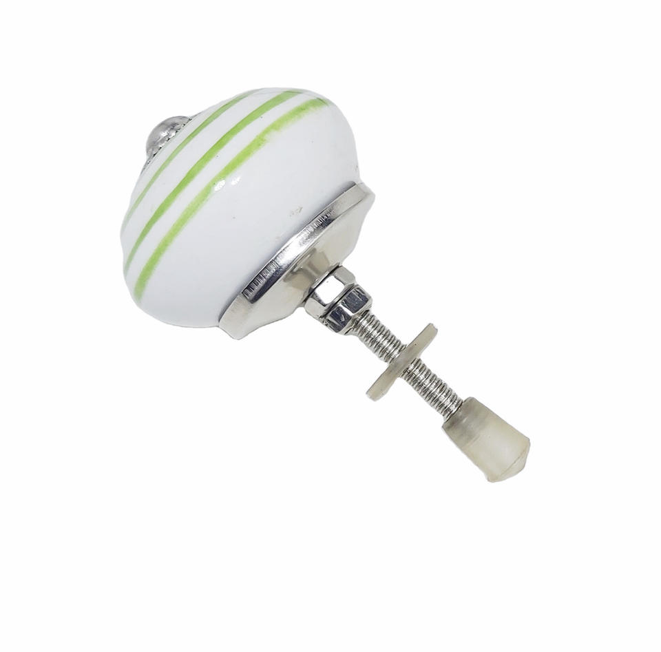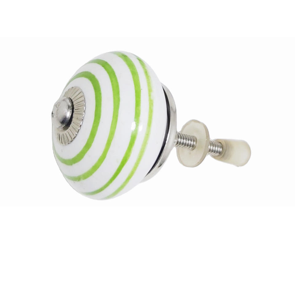 Industrial Style White Ceramic Knobs Green Strips Drawer Cabinet Handle Pulls for Wardrobe Kitchen Dresser Bedroom Living Room