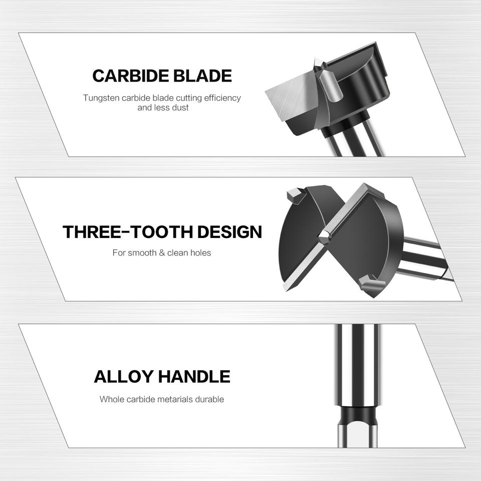 Industrial Triangular Shank Carbide Wood Drill Bits Flat Wing Hinge Boring Tool