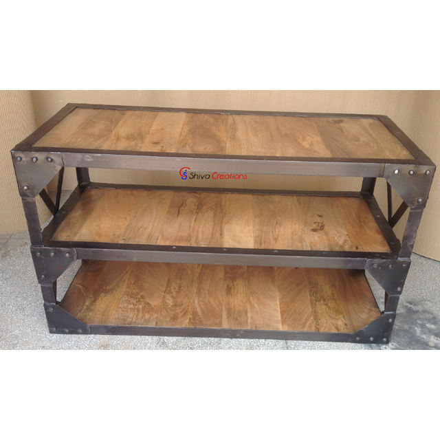 Wholesale Industrial Vintage Metal Wooden 3 Tier Shelves Display Rack
