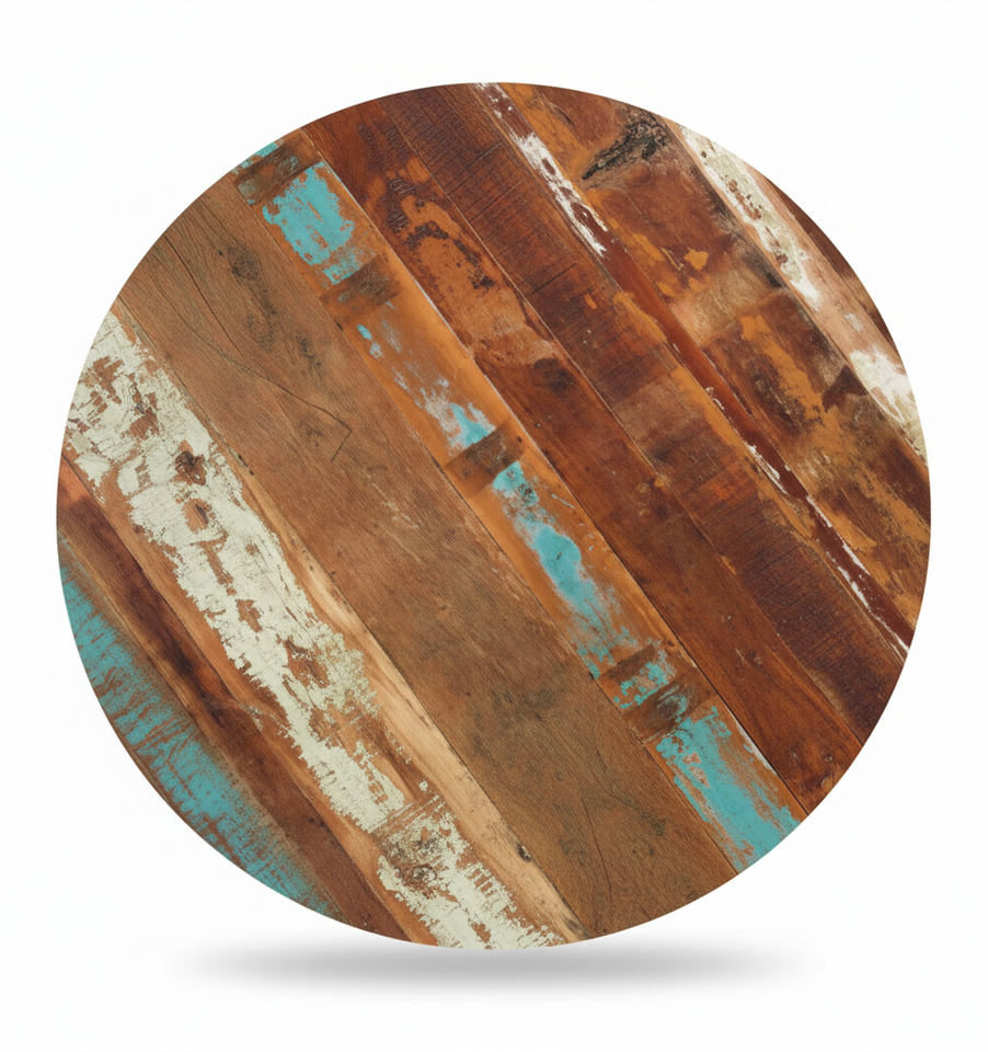 Industrial Vintage Round Dining Table with Recycled Wood Top and Metal Base for Restaurants Hotels Living Rooms