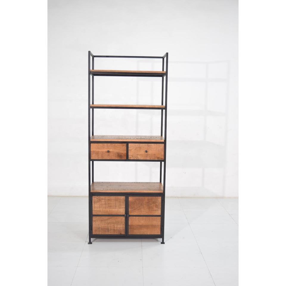 Industrial Vintage Style Mango Wood Adjustable Custom Size Foldable Bookshelf Retro Iron Frame Multi-Drawer Storage Workshop
