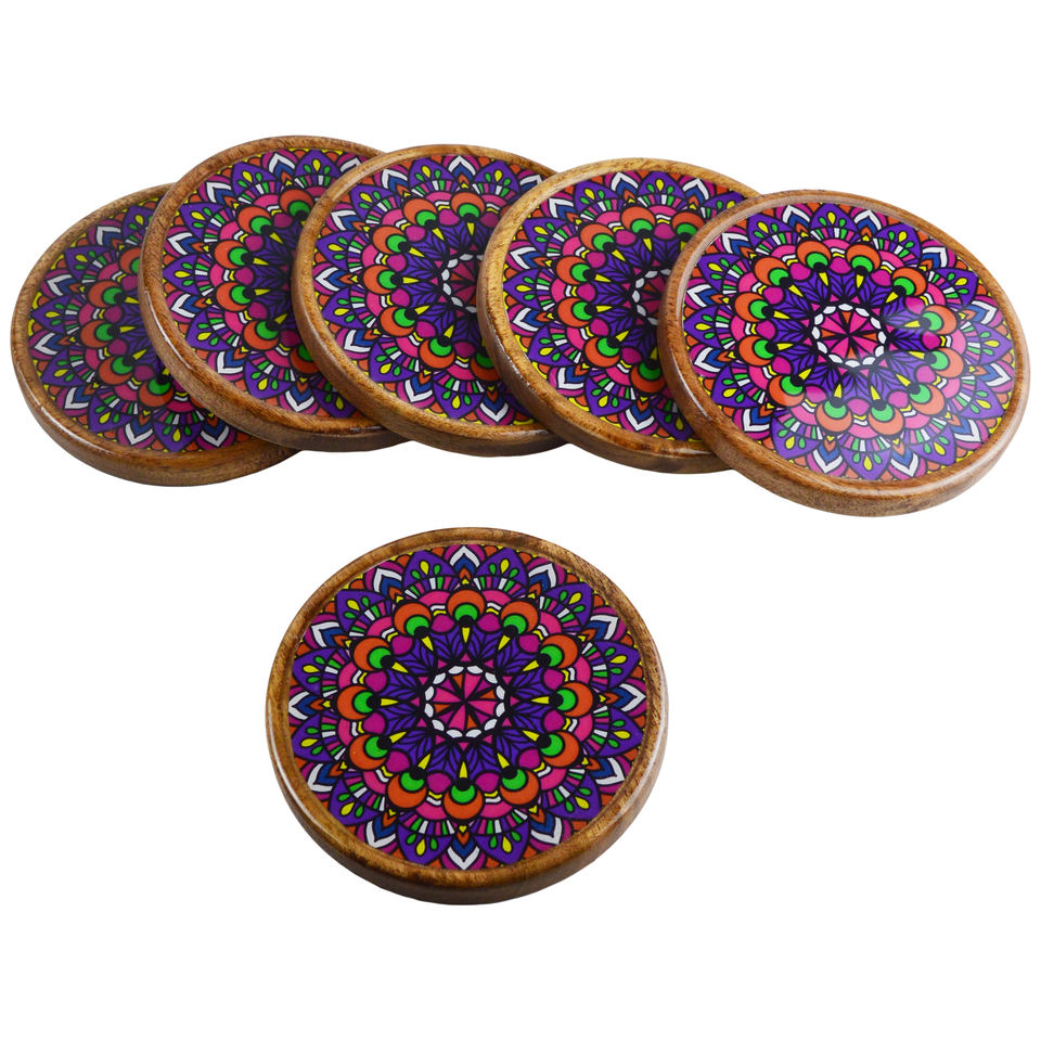 Industrial Wooden Design Coaster for Home Decor Hotel and Restaurant Decor With Printed Finishing Design Flat Coasters
