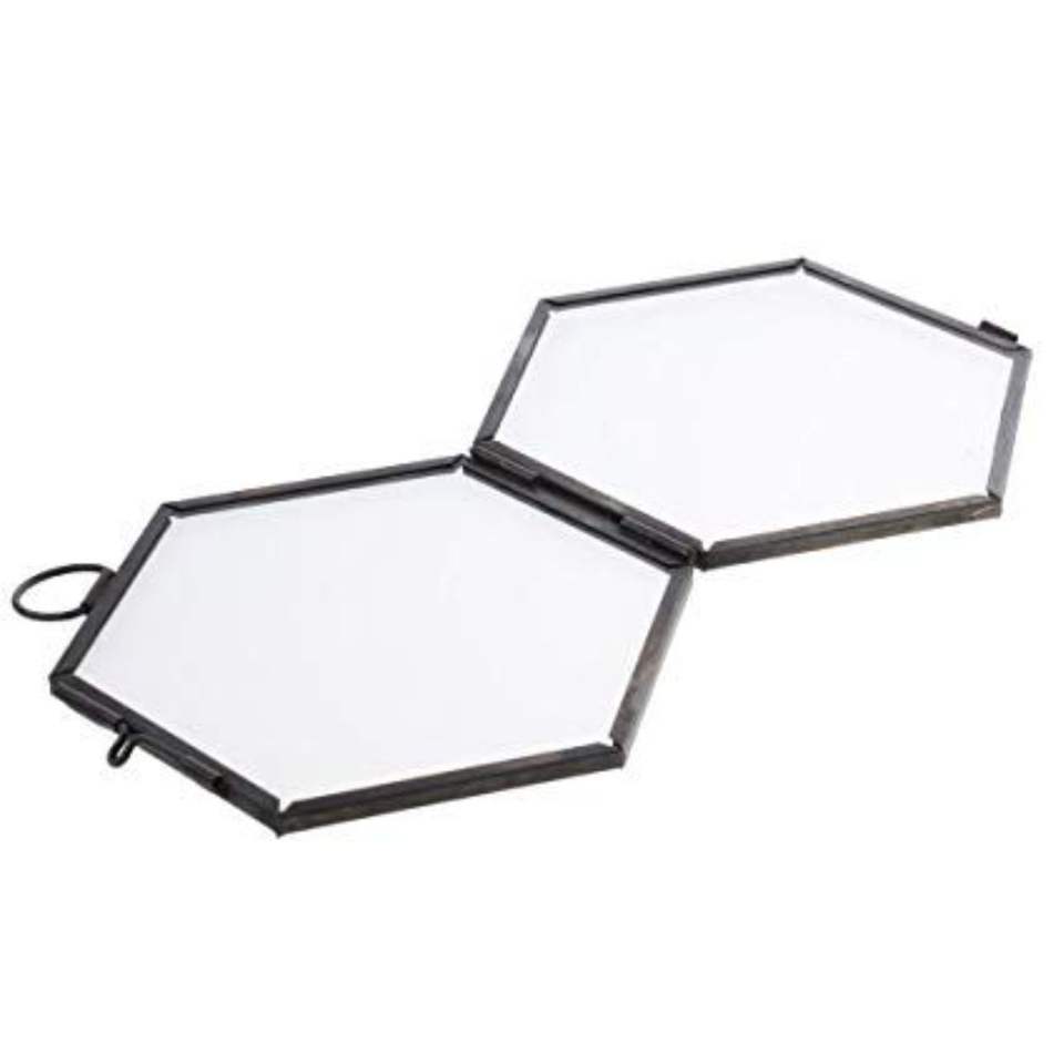 Industrial Zinc & Glass Double Sided Hexagon Hanging Frame Handcrafted Floating Photo Frame for Keepsakes and Herbarium Art