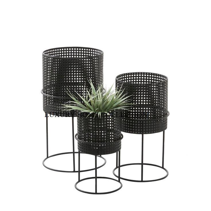 Industrial design modern metal planter with black matte finished and tall minimal stand for luxury apartment or villa decoration