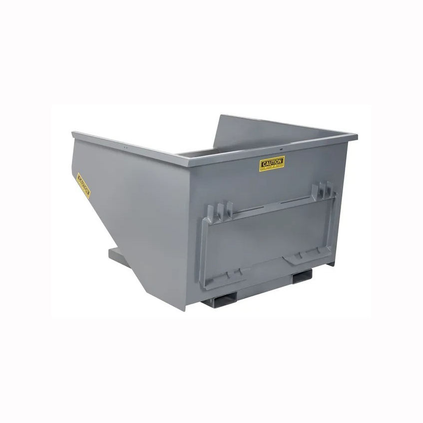 Industrial self dumping hopper for warehouse scrap waste material handling forklift compatible heavy duty steel body