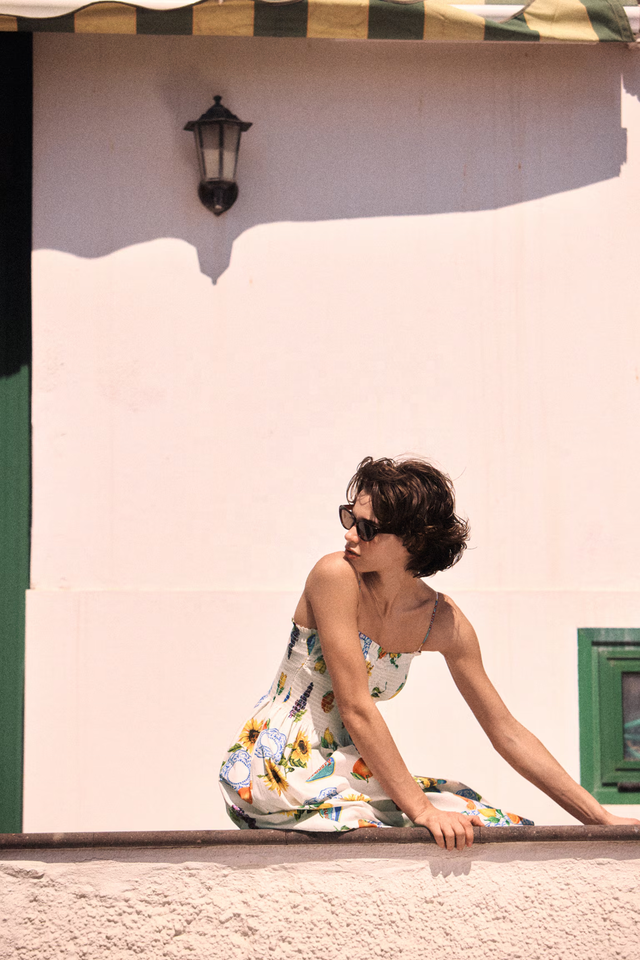 Product Name:Women's simple and printed smoked bodice strappy Dress