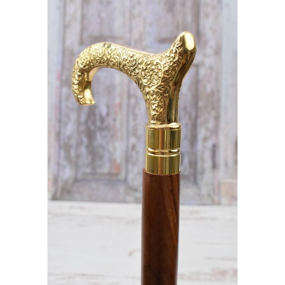 Industry Trending Classic Walking Stick Wooden And Brass Elegant Golden Cane Gift For Father In Laws