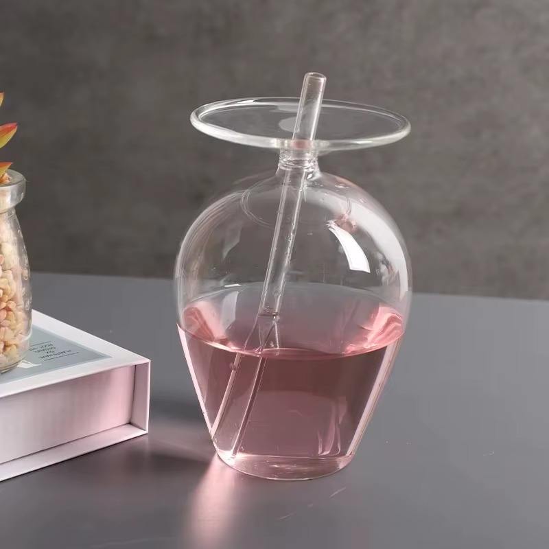 Industry Trending Upside Down Crystal Glass Wine Glass With Matching Straw Beautiful Gifts For Her Birthday Set Of 2 Pcs