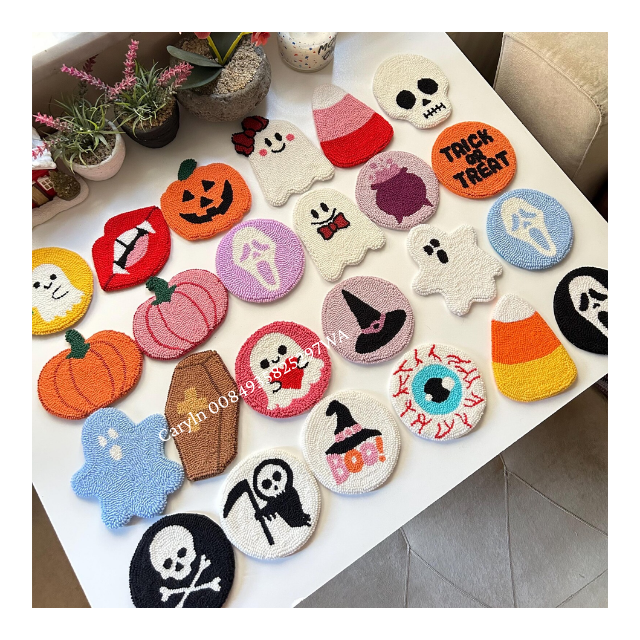 Inermor Halloween Handmade Pumpkin Tufted Cup Coasters Mini Mug Rug All Saints' Day Festival Table Decor Cup Mat