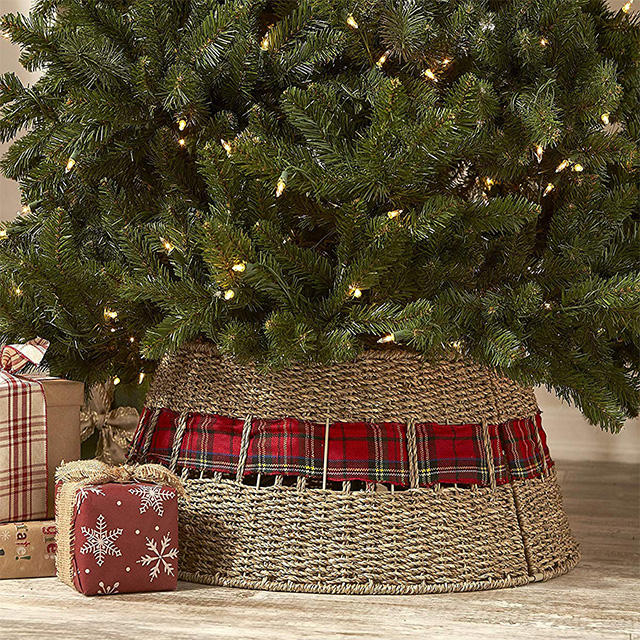 Inexpensive Folding Home Xmas Decor Woven Wicker Tree Basket Decorations Natural Water Hyacinth Christmas Tree Collar Skirts