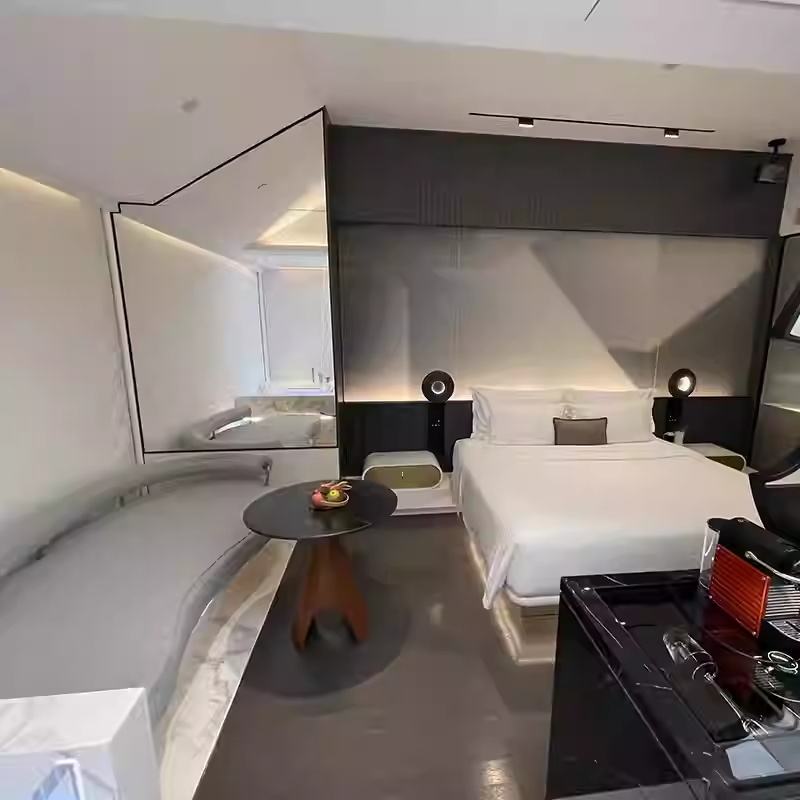 Inexpensive Modern Hotel Room Furniture Complete Bedroom Suite Wooden Frame King Queen Size Bed Nightstand Coffee Side Table