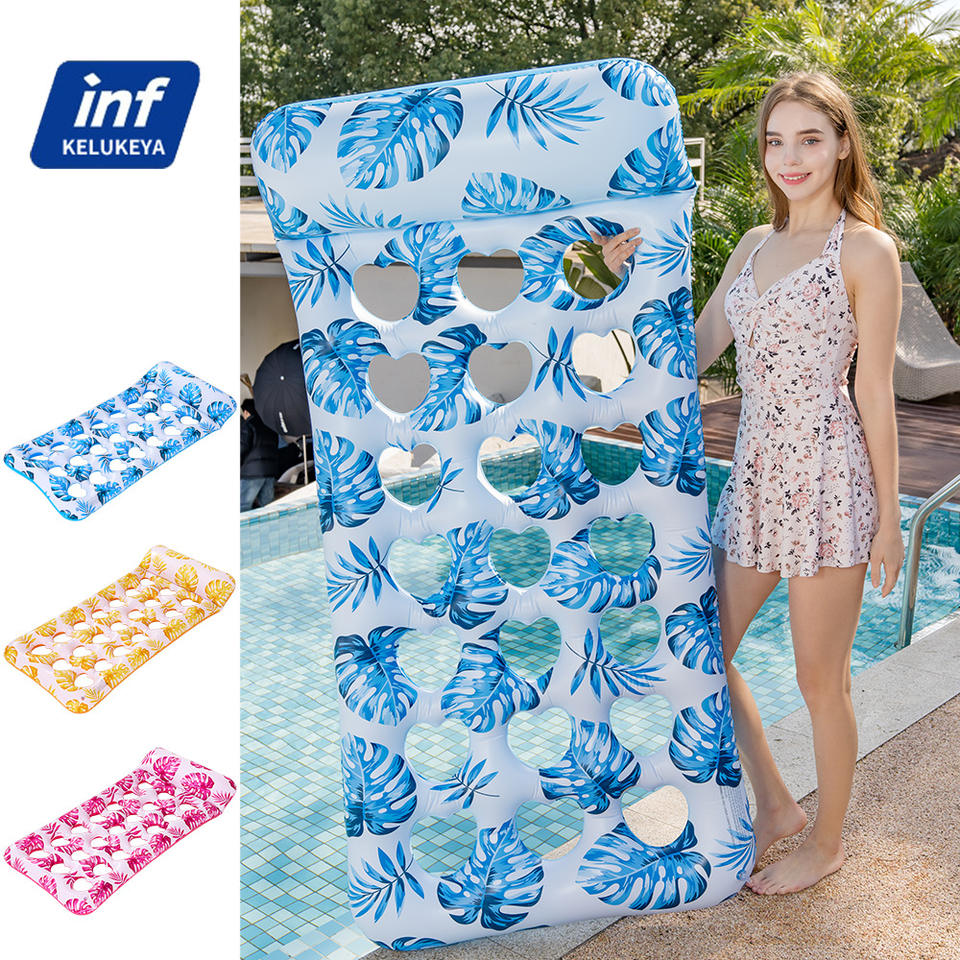Inf Kelukeya Inflatable Floating Lounger With Heart Holes Blue Leaf Pattern Pool Float Adult Water Recliner