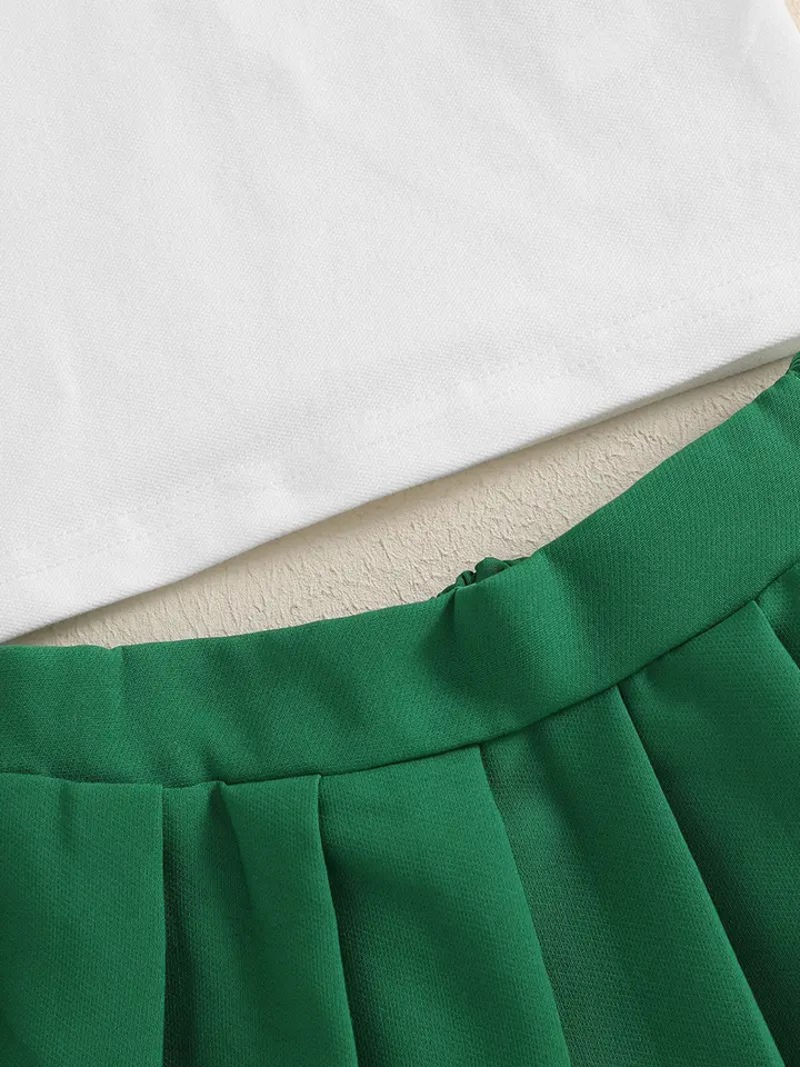 Infant Baby Girls Custom Design Summer School Uniform Set Contrast Colors Short Sleeve T-Shirt Elastic Pleated Skirt Breathable