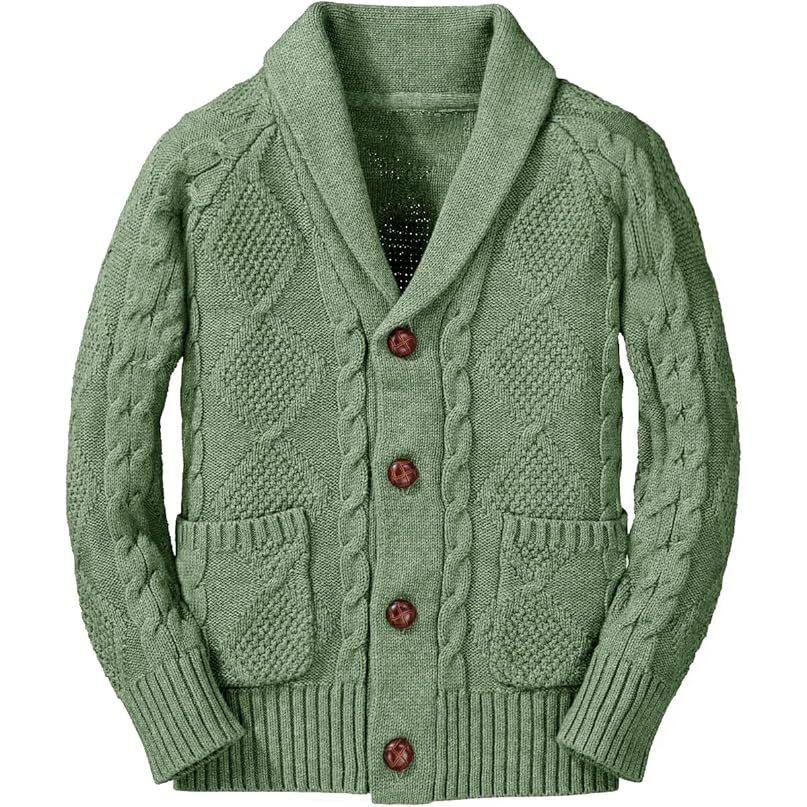 Infant Boys Thick Cotton/Acrylic Winter Knitted Breathable Eco-Friendly Anti-shrink Anti-Wrinkle Shawl Neck Long Sleeve Cardigan