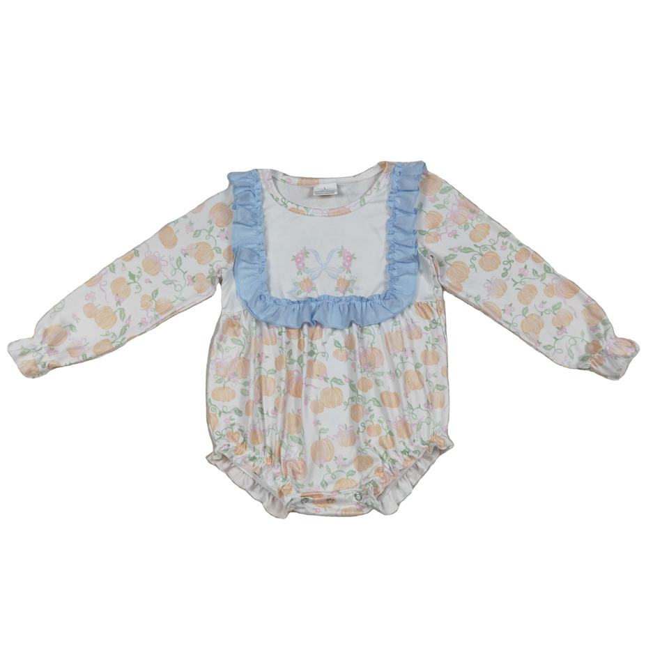 Infant baby girl pumpkin leaves pattern print kids wholesale romper long sleeve RTS jumpsuit child thanksgiving set