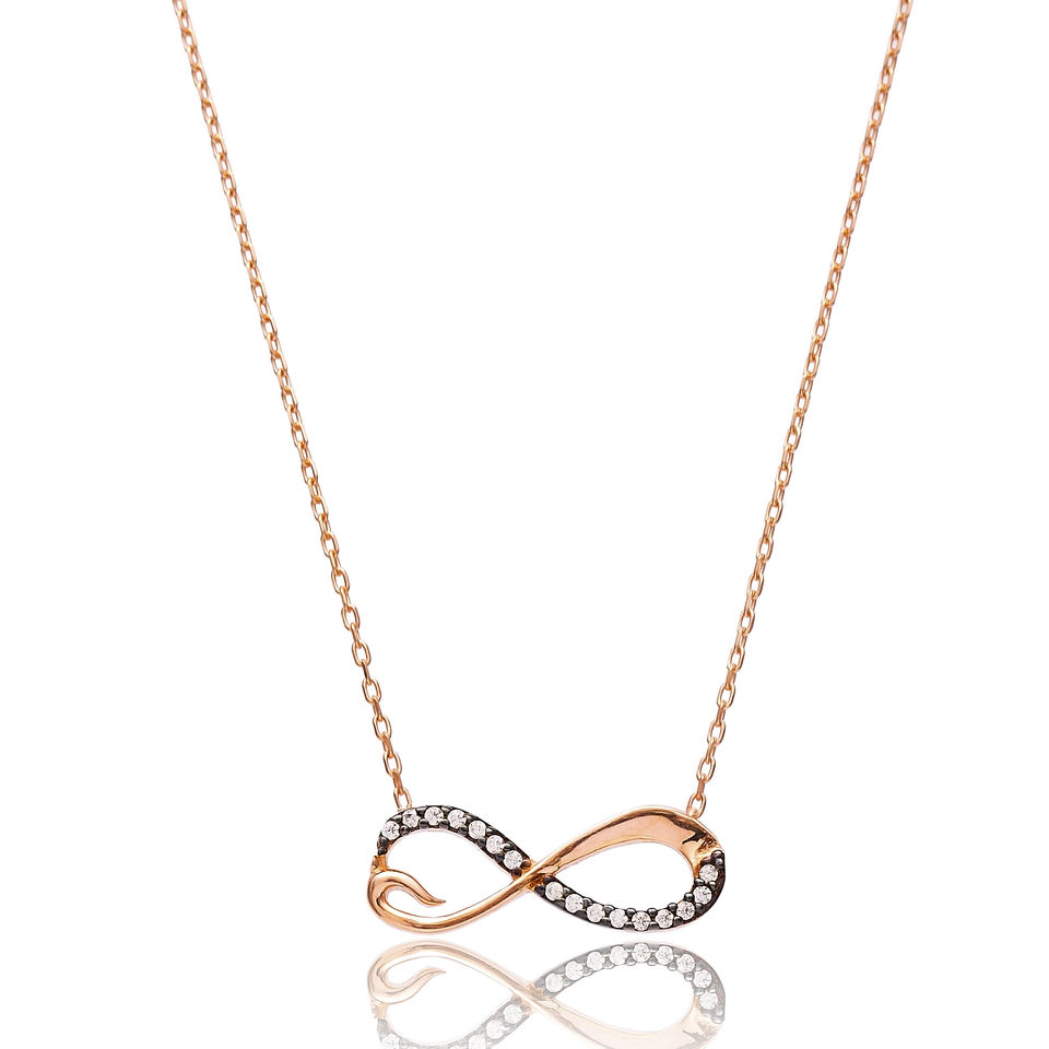 Infinity Design Zircon Stone Charm Necklace Turkish Handcrafted Wholesale 925 Sterling Silver Woman Pendant