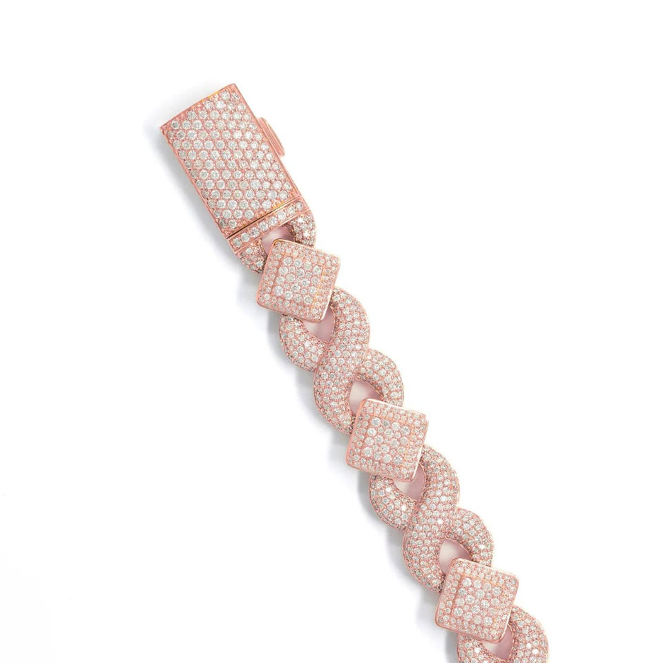 Infinity Link Unisex 925 Sterling Silver Hip Hop Bracelet Natural Diamond Studded Square Bangles Fashionable Gift Idea