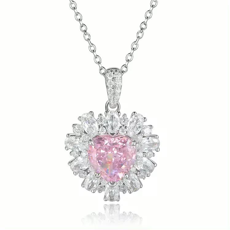 Infinity Love Luxury Necklace with Pink Cubic Zircon Gold and Rhodium Heart Pendant for Parties Fashionable Pendants & Charms