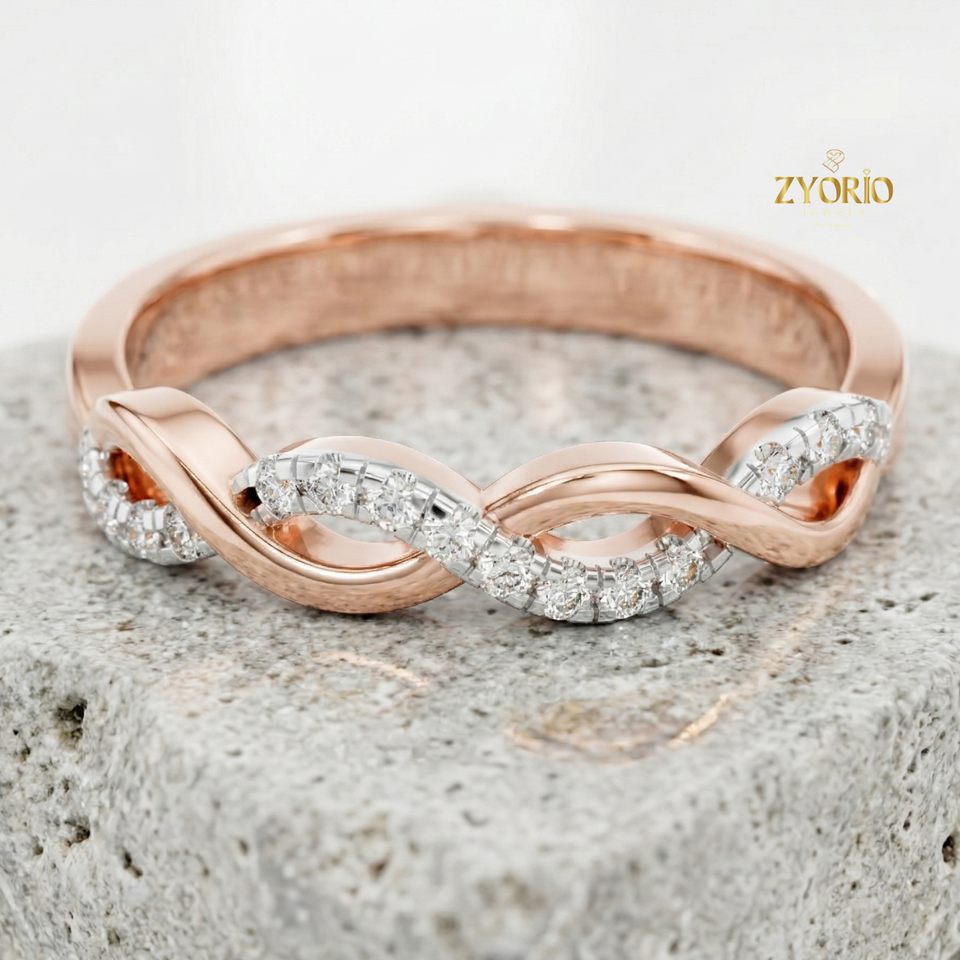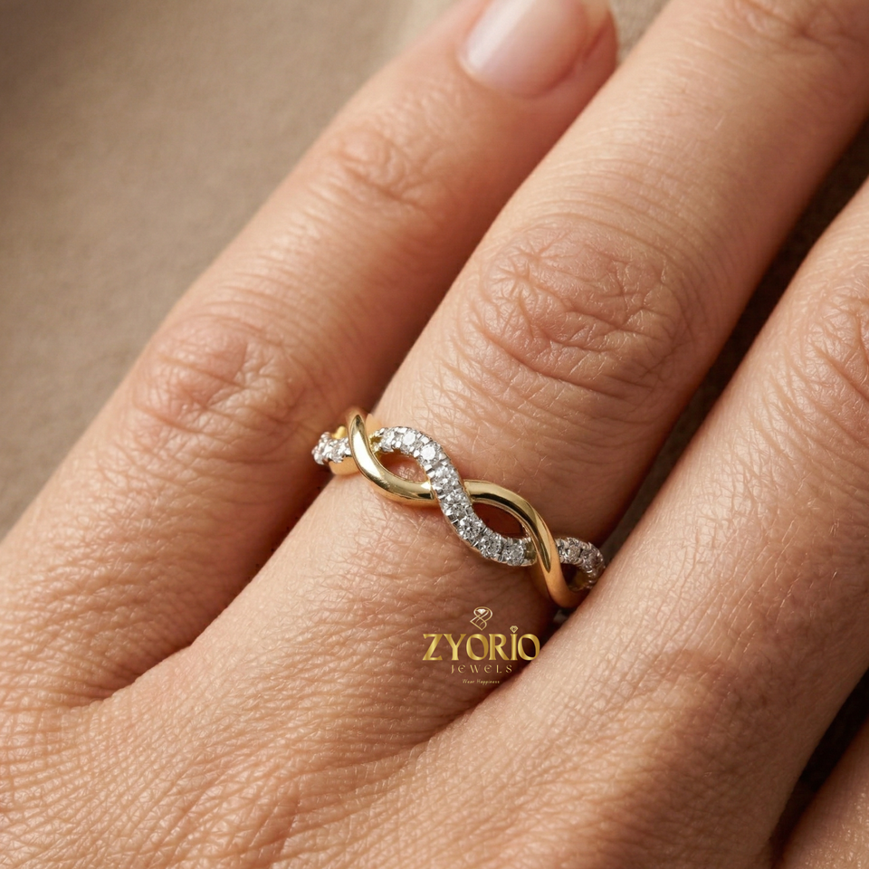 Infinity Wave 10K GOLD Lab Grown Diamond Ring Women Elegant Twisted Band Wedding Jewelry