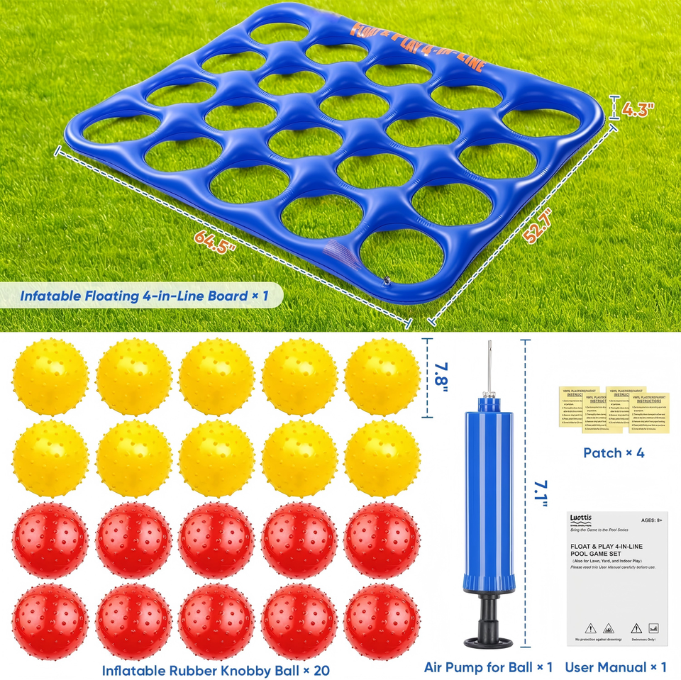 Inflatable 4-in-a-Row Pool Game Set with Red & Yellow Balls for Multiplayer Family Water Fun
