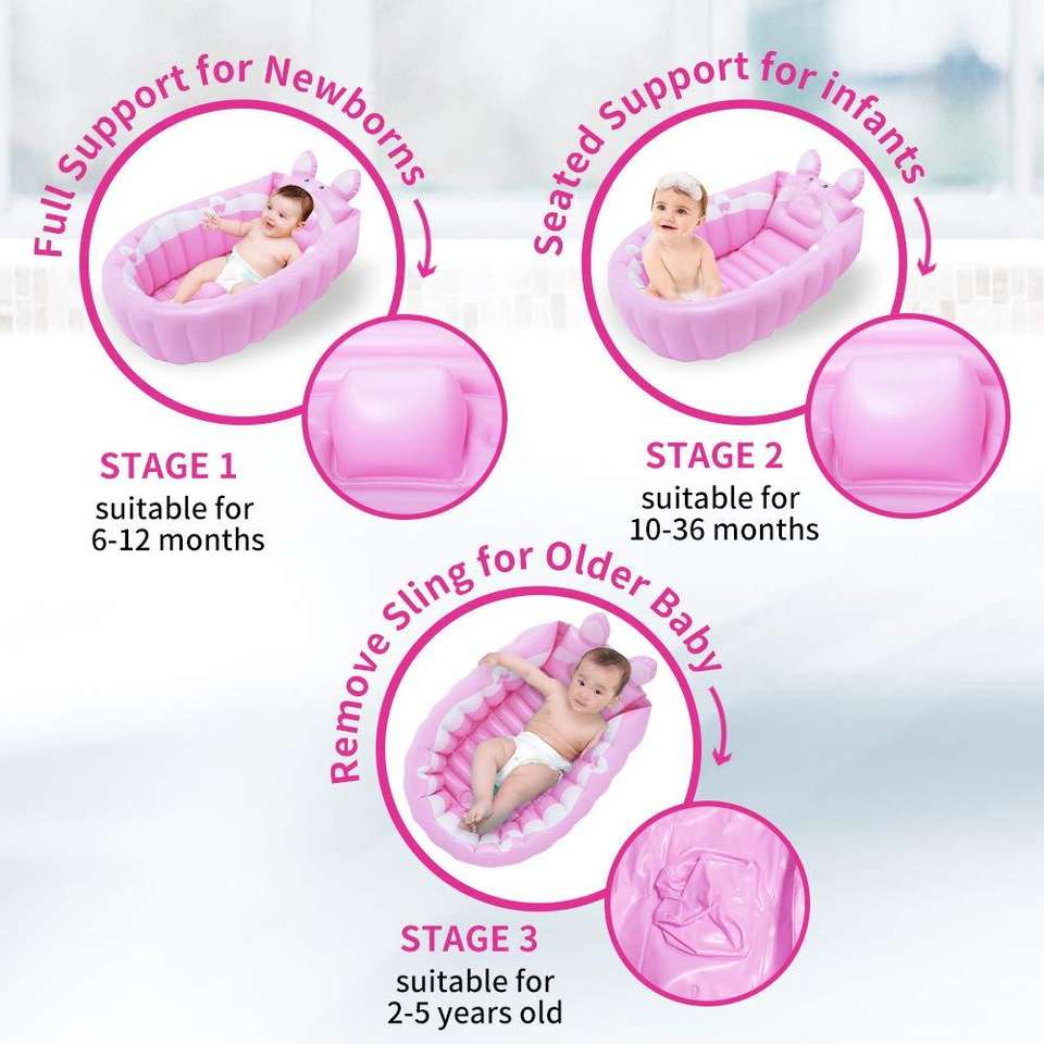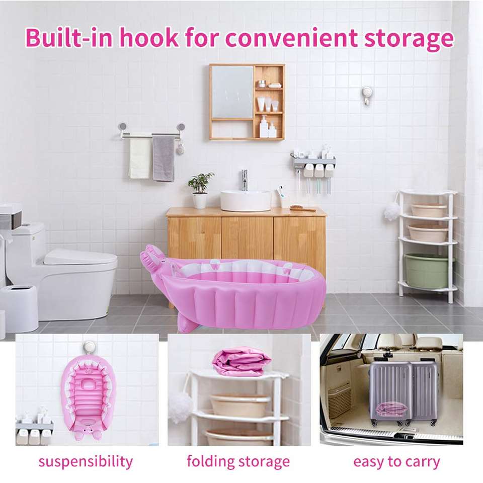 Inflatable Baby Bathtub Foldable Rabbit Design Infant Shower Tub with Hook for Newborn Toddler