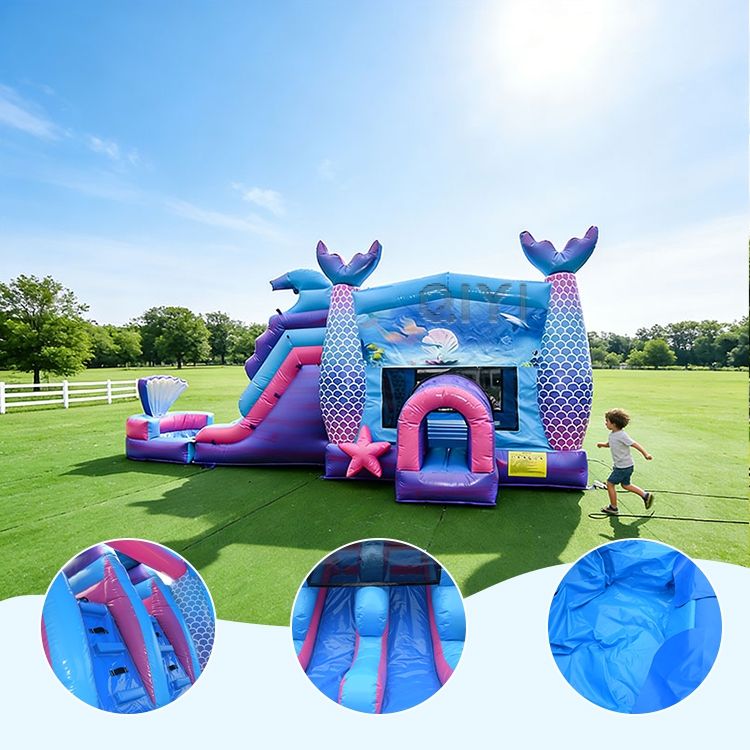 Inflatable Bouncy Pastel Play House New Design Outdoor Blue Bouncy Castle With Slide Combo