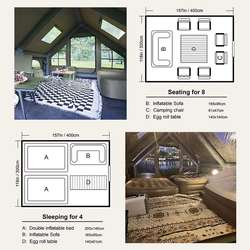 Inflatable Camping Tents with Hand Pump.Air Glamping Tents, Easy Setup Waterproof and Windproof Blow up Tent,4 Seasons