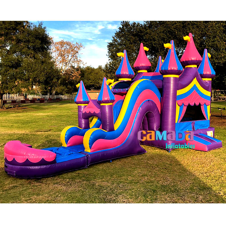 Dual Lane Combo Inflatable Flag Tower Banner Dry/Wet Slide for Pool Party Bounce House Castle