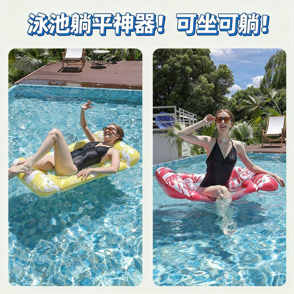 Inflatable Floating Raft 18-Hole Leaf Design PVC Pool Lounge Chair Water Float Single Size