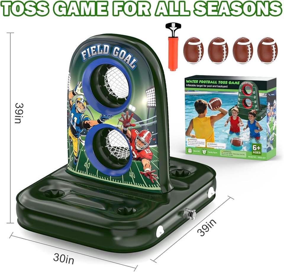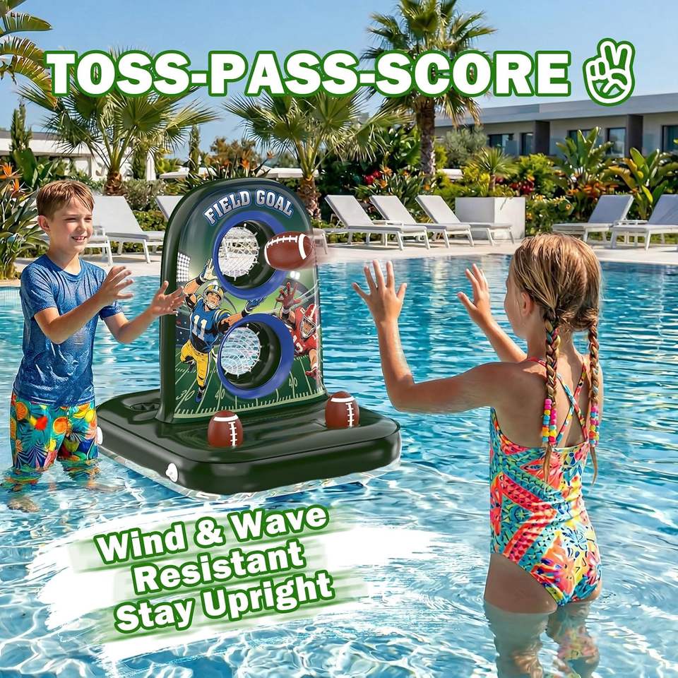 Inflatable Football Toss Target Game with Dual Goals for Pool & Outdoor Play