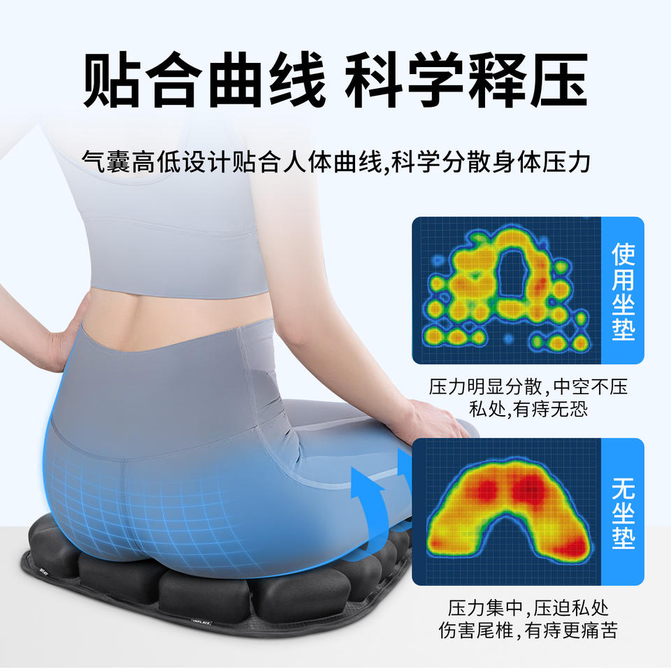Inflatable Seat Cushion With Built In Pump Oblong Breathable Coccyx Support Chair Cushion For Car Living Room Bedroom Outdoor
