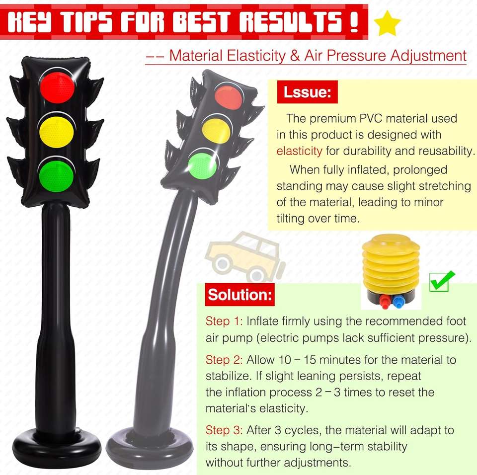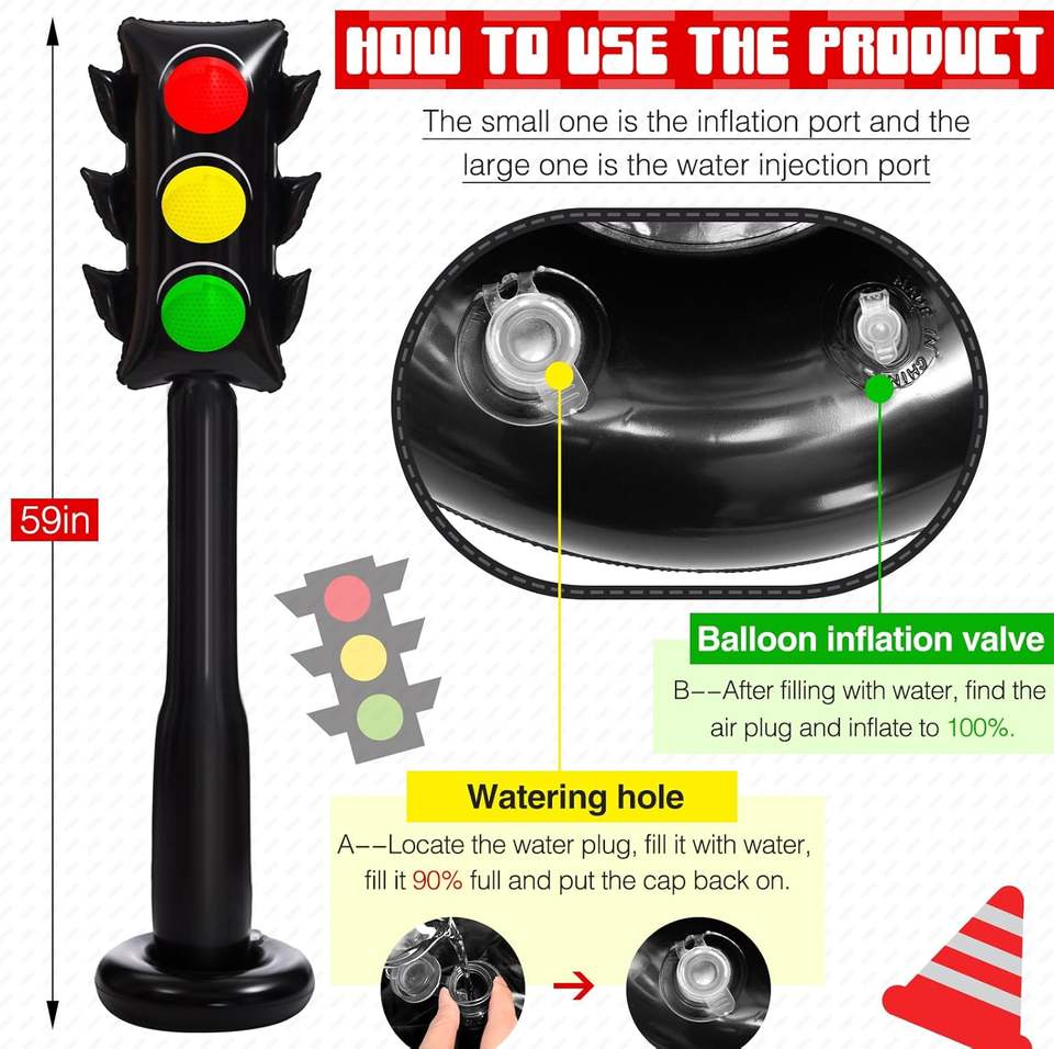 MAKE WAVES Inflatable PVC Traffic Light with Stand 59"H Waterproof Portable Kids Traffic Themed Party Decor & Pretend Play Prop