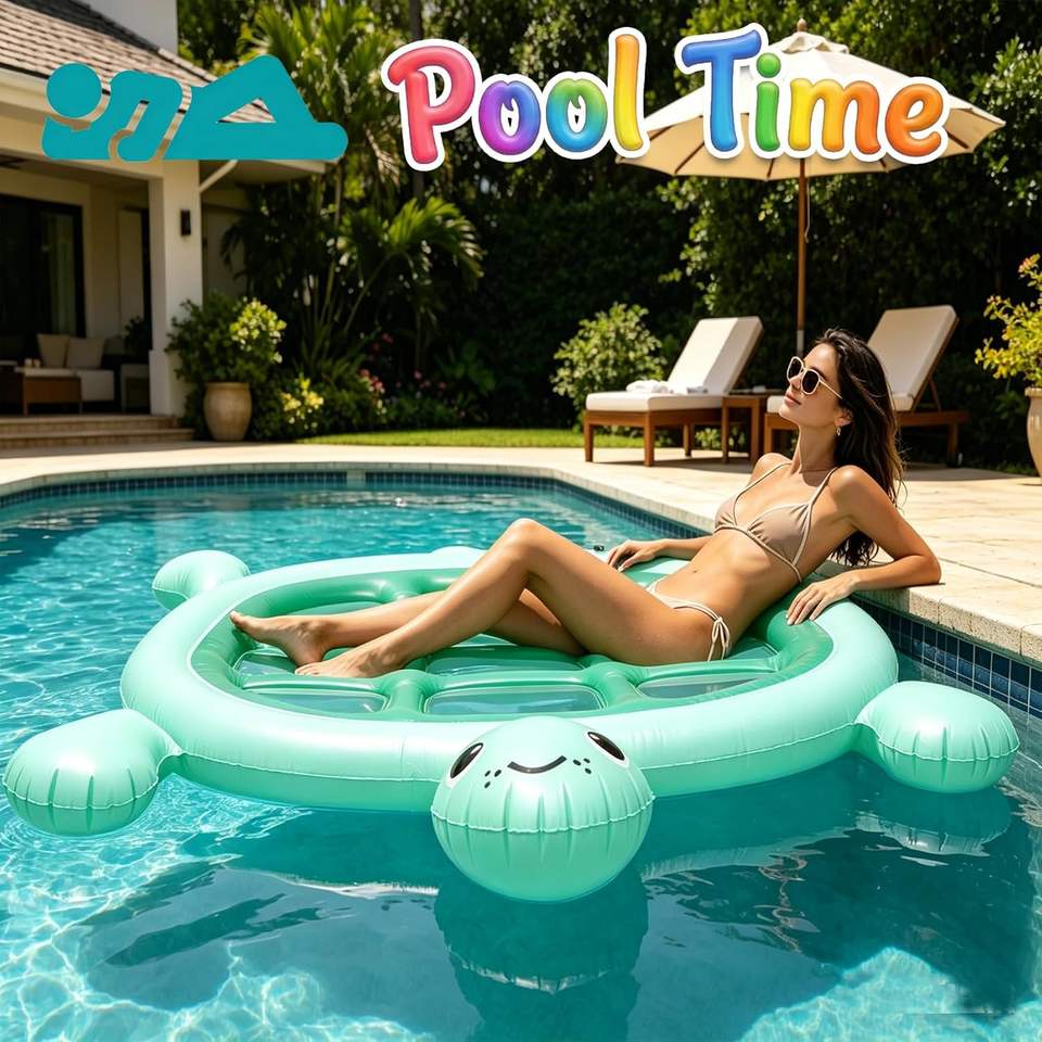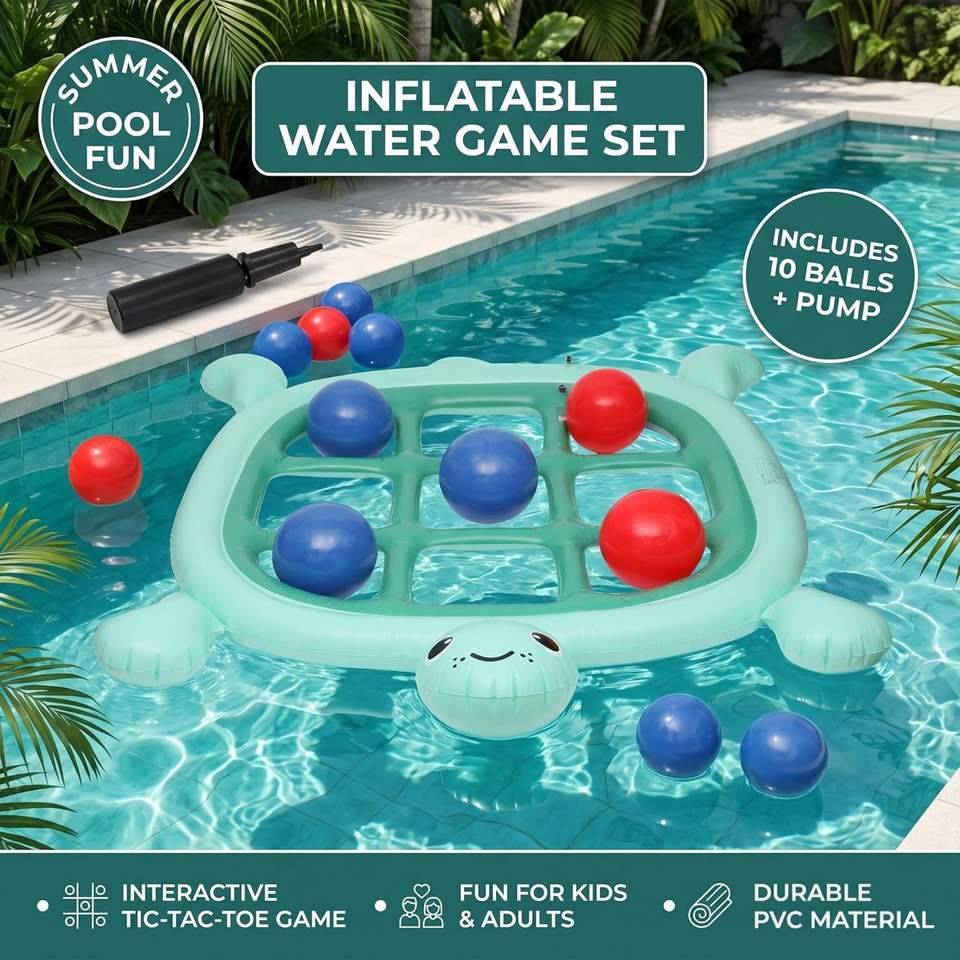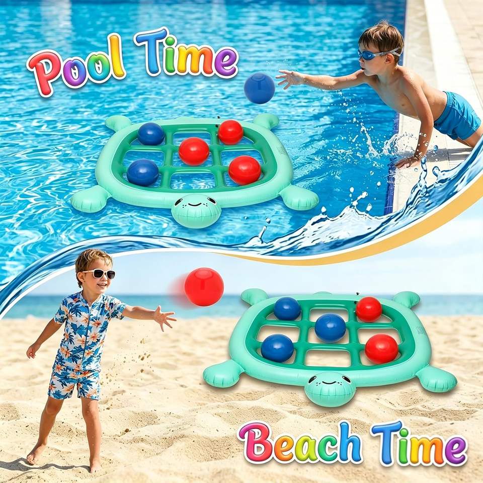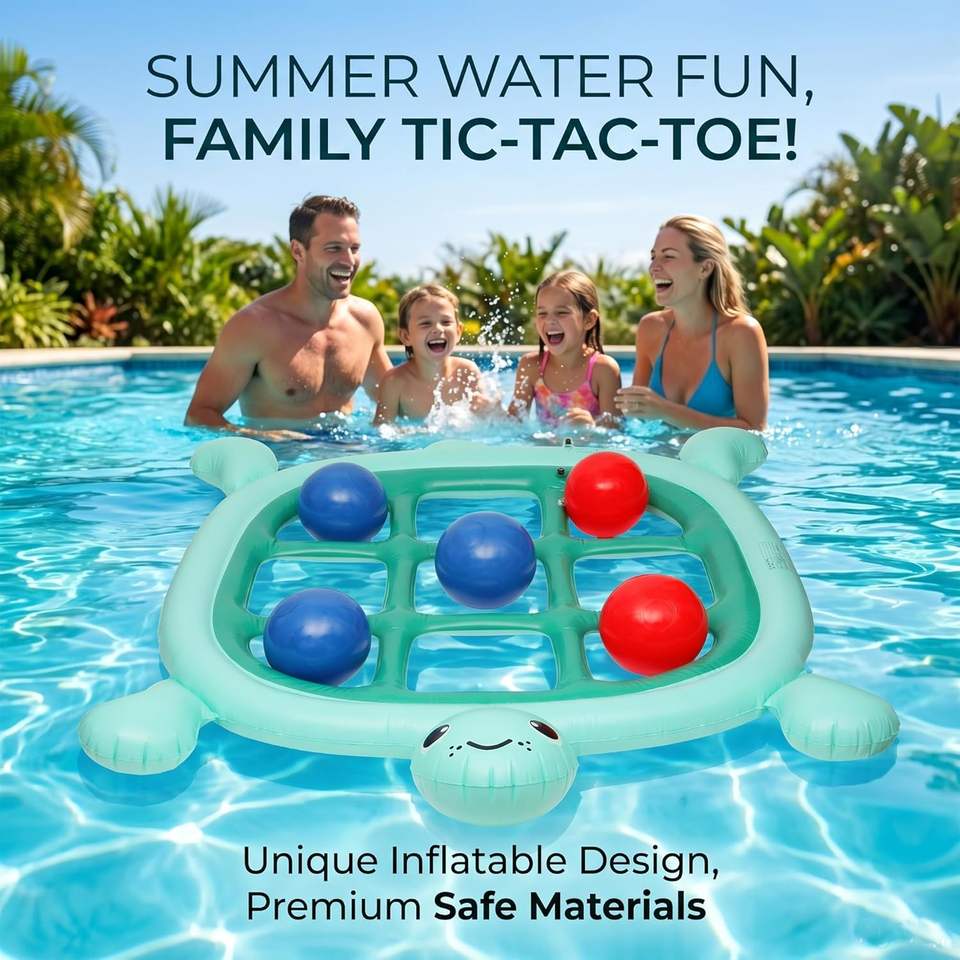 Inflatable Turtle Tic Tac Toe Pool Game with Balls for Family Summer Water Fun