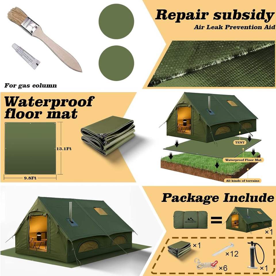 Inflatable camping tent and hand pump waterproof Oxford 4 Season camping air tent cabin with grid doors and Windows