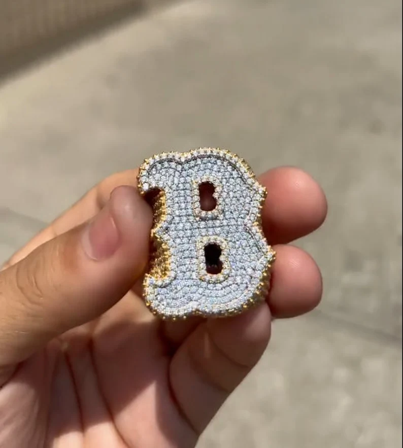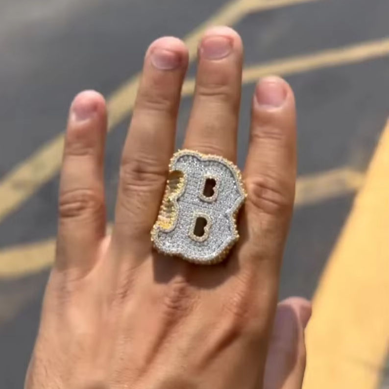 Initial B Men's Custom Hip Hop VVS Moissanite Diamond Wedding Eternity Band Fashion Ring in Iced Style Alloy Jewelry