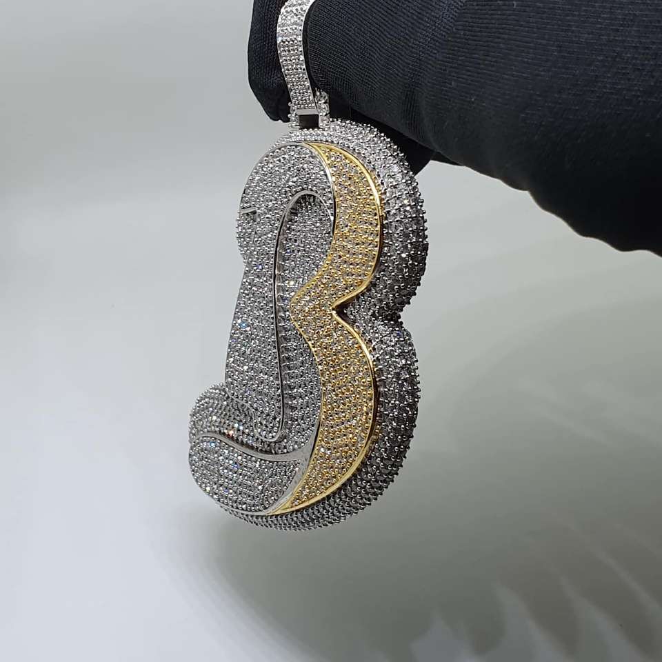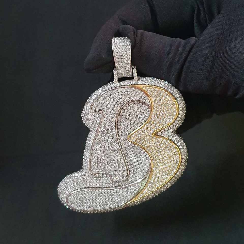 Initial Letter Pendant 3 Long 925 Silver with Moissanite Diamonds HipHop Style Iced Out Fine Jewelry Pendants & Charms
