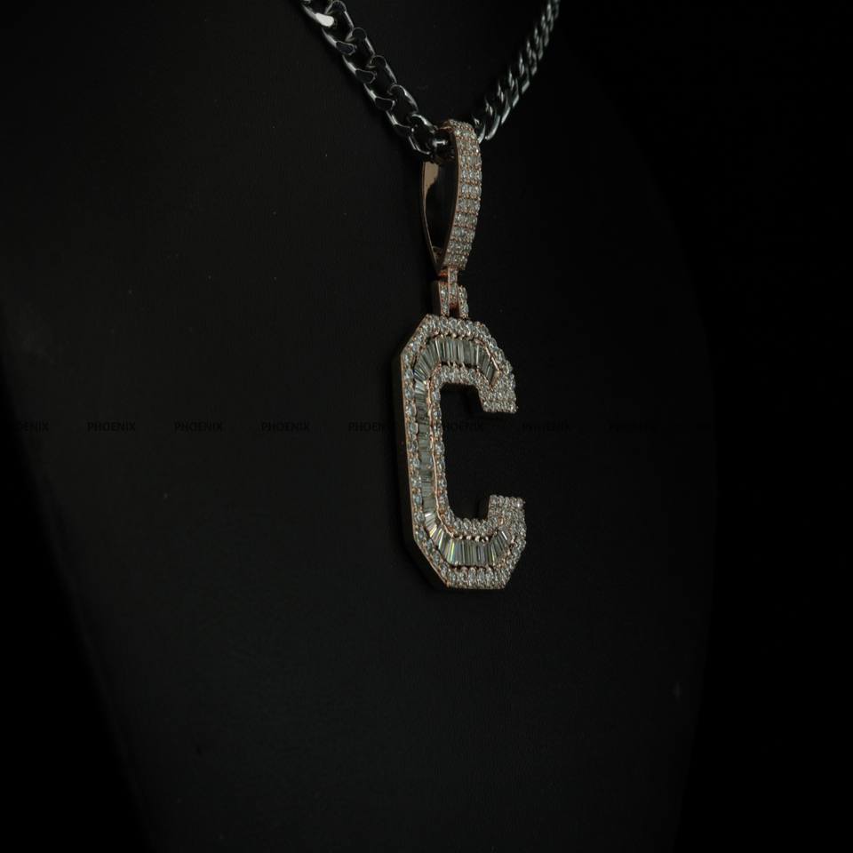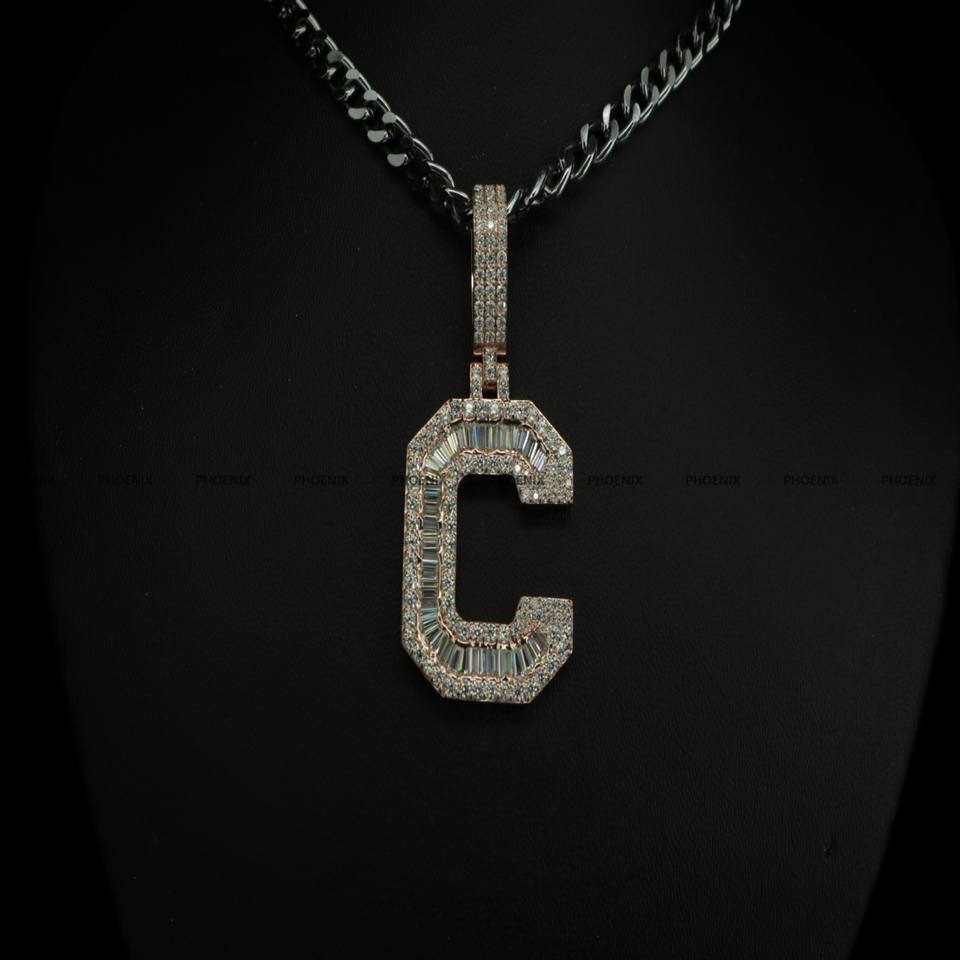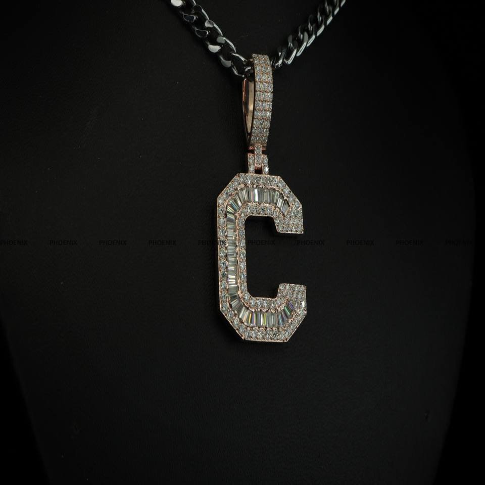 Initial Name Letter C Pendant Moissanite Baguette & Round Cut Diamond Pendant 925 Sterling Silver Pendant Gifts and Daily Wear