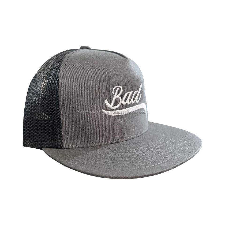 Injae Vina Casual 5-Panel Trucker Hat For Men And Women 2D Embroidery Flat Brim Mesh Back For Casual Travel Outdoor Activities