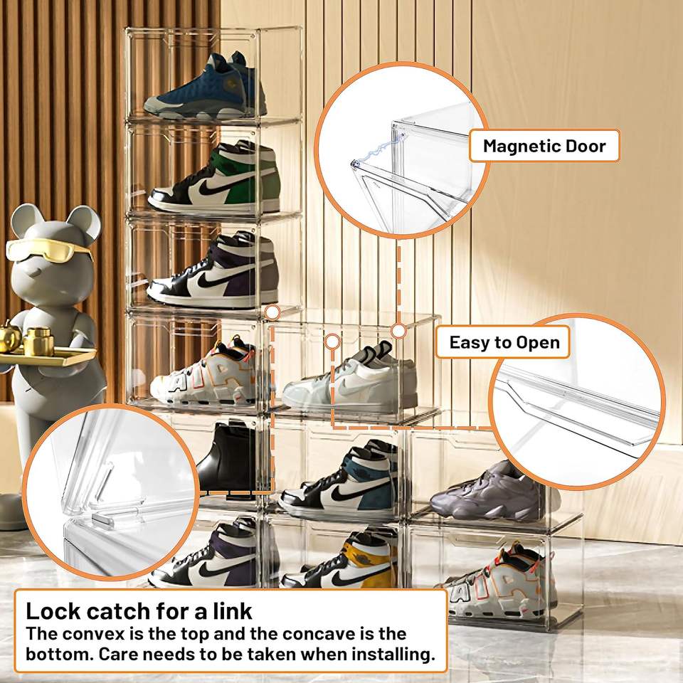 Injection Molded PET Acrylic Fold Magnetic Side Open Custom Organizer Case Giant Transparent Clear Sneaker Shoe Storage Display