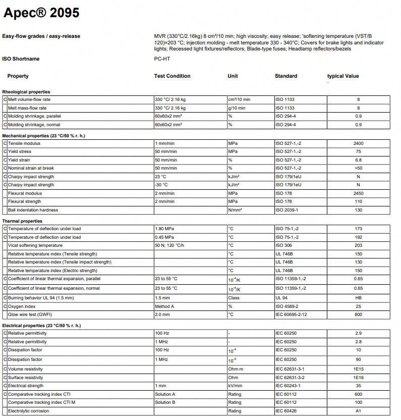 Injection Molding PC Resin Apec 2095 Mfi 8 Virgin Raw PC Granule for Automotive Headlight Cover/ Reflectors
