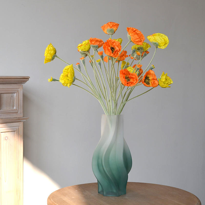 Injoy IJ023 Shanghai Wholesale Handmade Silk 5-Heads Poppy Flower Flocked Stem 65cm Modern Style Artificial Flower Home Decor