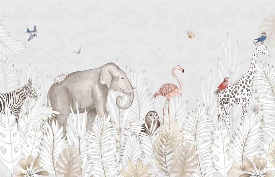 Ink Wash Animal Mural, Hand-Painted Eco-Friendly Fireproof Line Art Wallpaper for Modern Kids Room