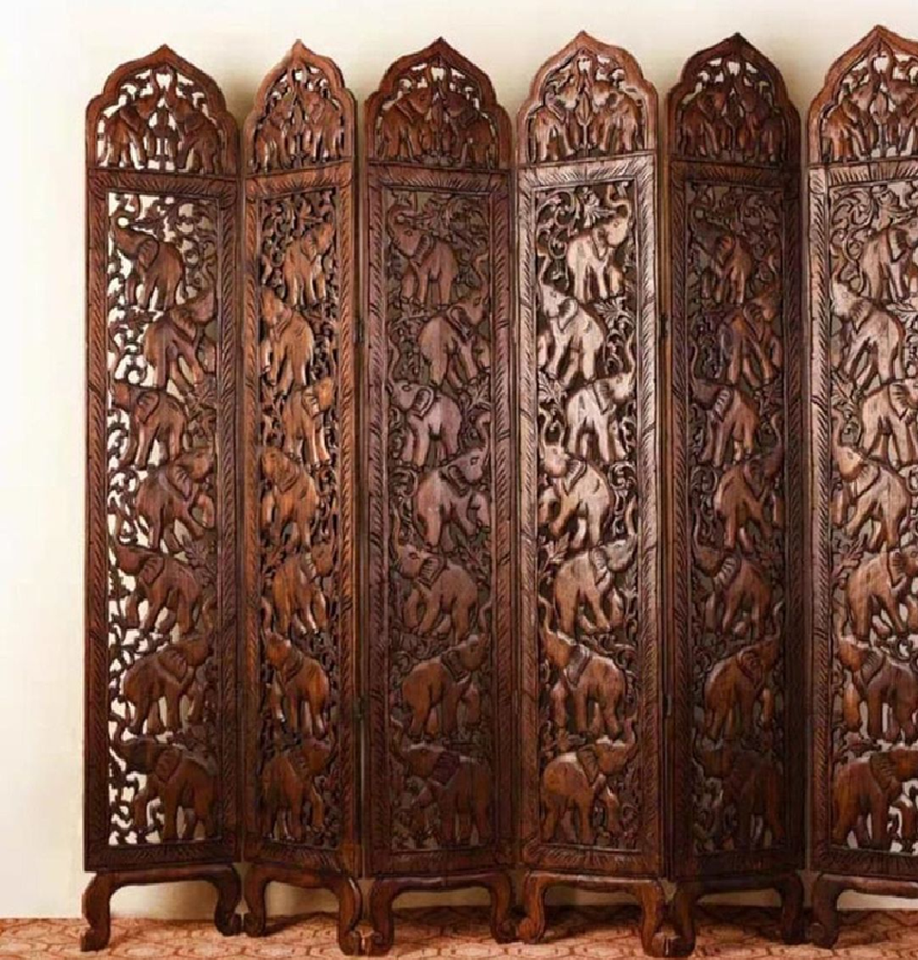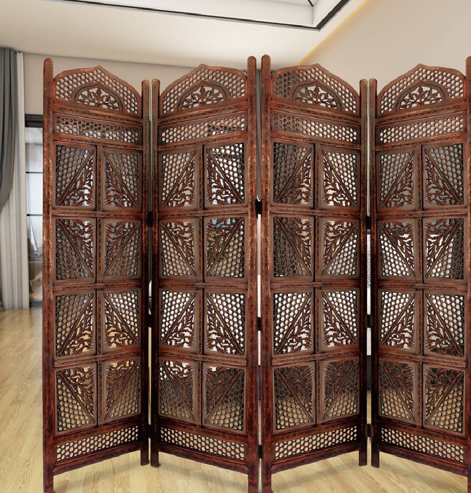 Inlaid wooden room divider, geometric patterns, intricate design. Elegant accent, available at wholesale prices.