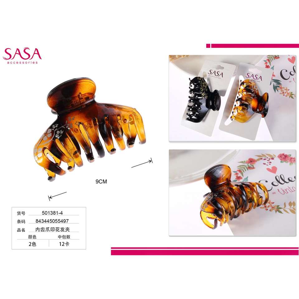 Inner Tooth Shark Clip Floral Print Black Gold Print Yellow Tortoise Shell Silver Print 5cm PC Plastic Claw Clip