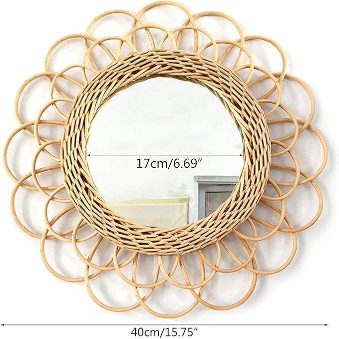 Innovative Art Decorative Natural Rattan Wall Hanging Craft Photography for Living Room Bathroom Makeup Dressing Wall Mirror