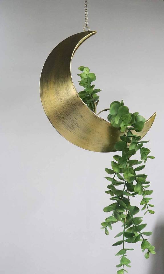 Innovative Moon Shaped Handmade Iron Planter with Coastal Design for Multi-Purpose Home & Garden Decor Candle Holder Planter