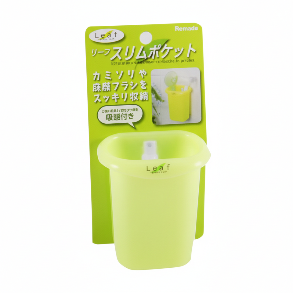 Inomata Slim Pocket Green Leaf Suction Car Organizer