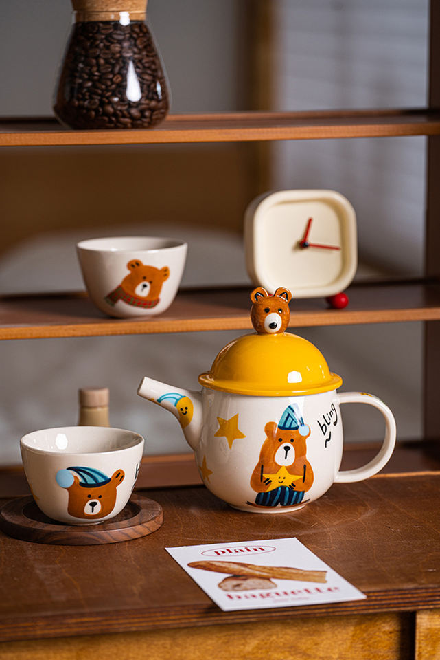 Ins Cute Handmade Bear Ceramic Tea Pot and Cup Set