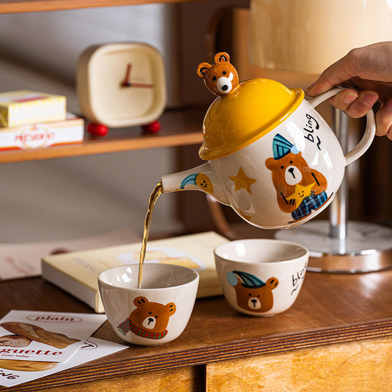 Ins Cute Handmade Bear Ceramic Tea Pot and Cup Set Cartoon Afternoon Tea Cup Set