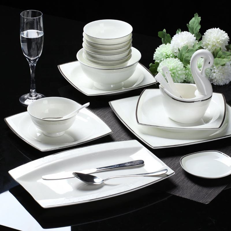 Ins Fashion 60 Pcs Simplicity Silver Romance Bone China European Style Porcelain Dinnerware Sets with Cup Kit